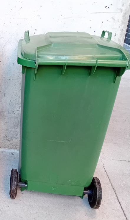 Disposem de 5 contenidors de 240 litres de color verd (un té la tapa trencada) amb les següents mides: